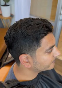 A clean men’s haircut with one length or any fade, finished neatly and designed to last.
